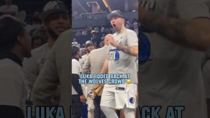 Luka Doncic boos back at the Timberwolves crowd during the Mavs Western Confernece Finals trophy presentation. source