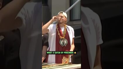 Porzingis catches a beer thrown by a fan at the Celtics championship parade 😂 (via NBA TV, NBC 10 Boston) Subscribe: https://www.yout...