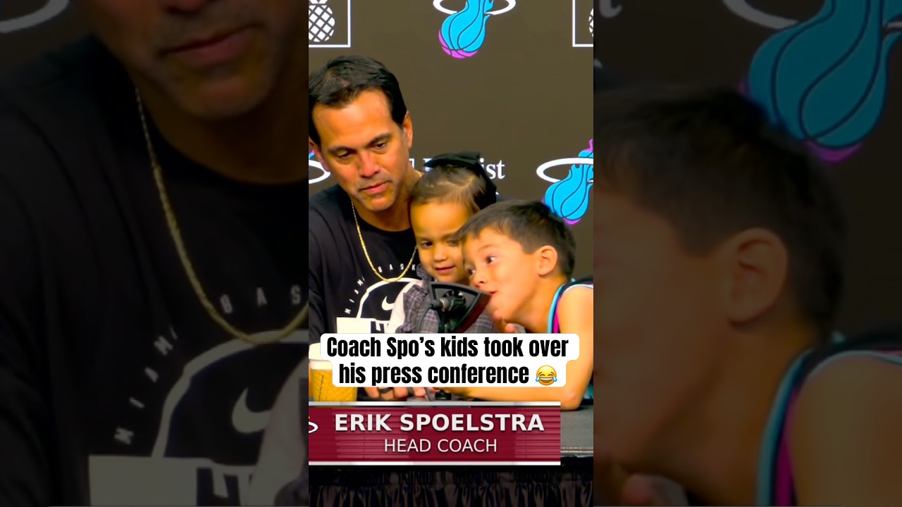 Erik Spoelstra’s kids took over his postgame press conference (via @MiamiHEAT) #nba #miamiheat #heat.