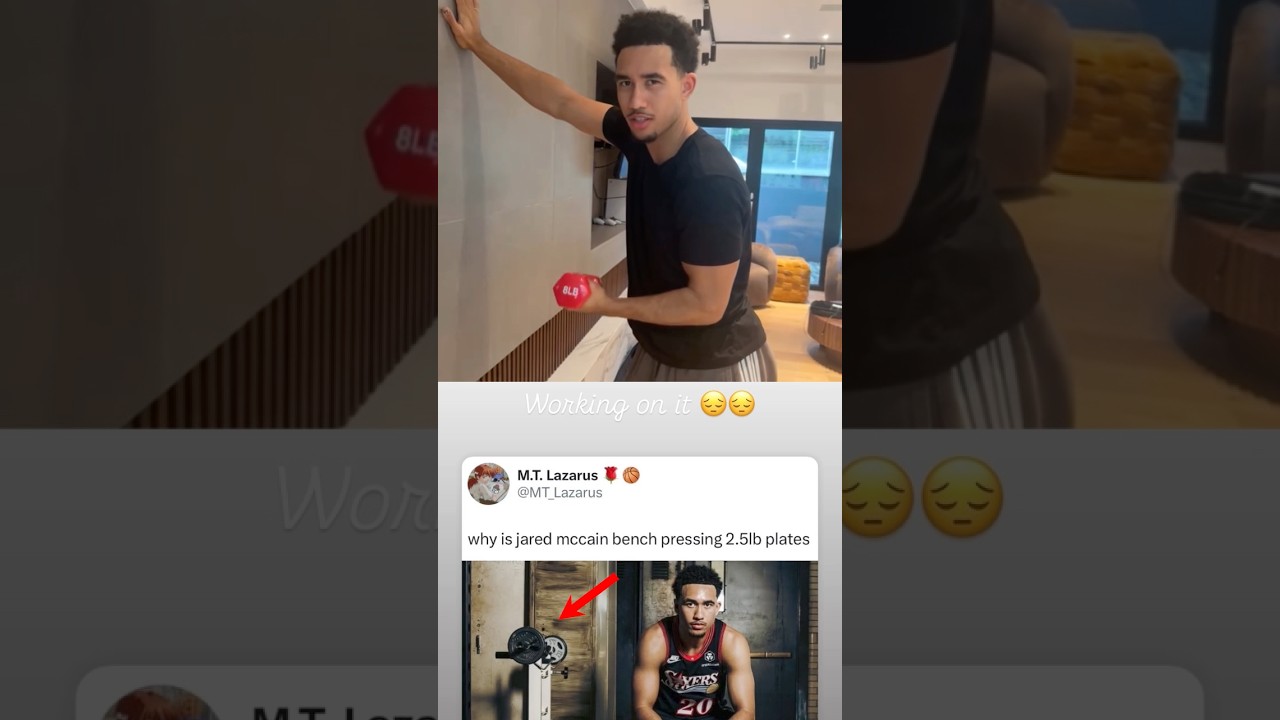 Jared McCain responds to viral photo of him with 2.5lb plates (via jmac/IG, h/t MT_Lazarus/X) #nba #76ers #sixers.