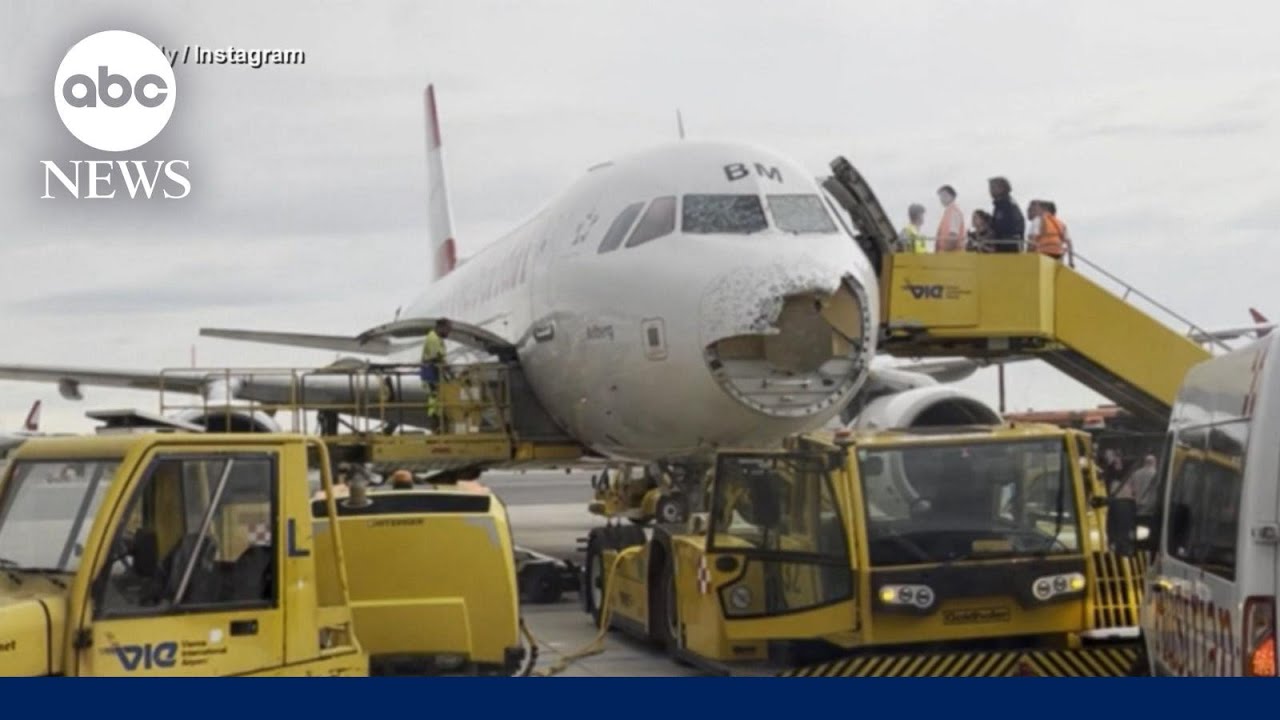 The plane landed safely in Vienna, Austria, without any passenger or crew injuries after it was caught in a hailstorm shortly before …