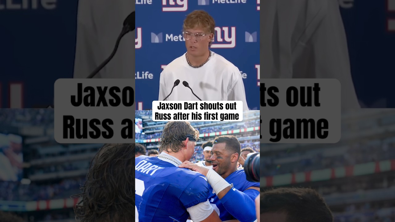Jaxson Dart shouts out Russell Wilson and Jameis Winston after winning his first start with the New York Giants #nfl #nygiants …