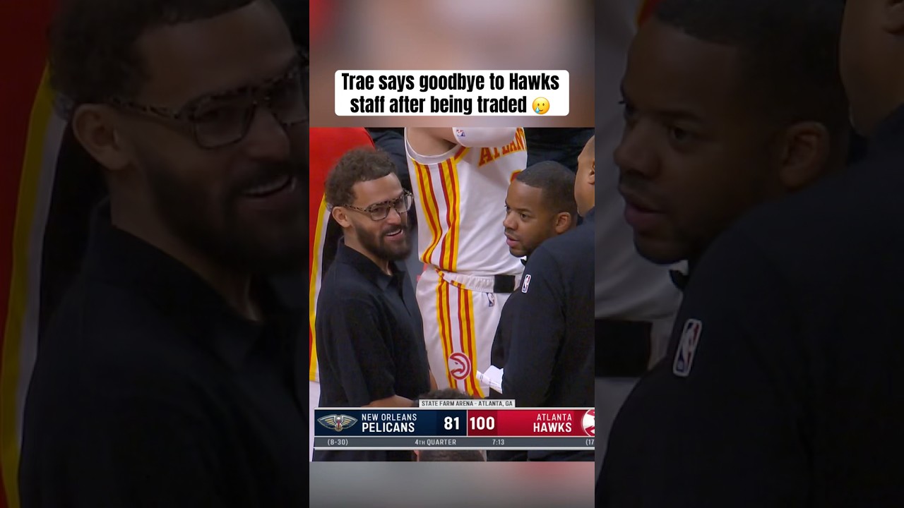 Trae Young says goodbye to Hawks staff members after being traded to the Wizards mid game #nba #traeyoung #hawks.
