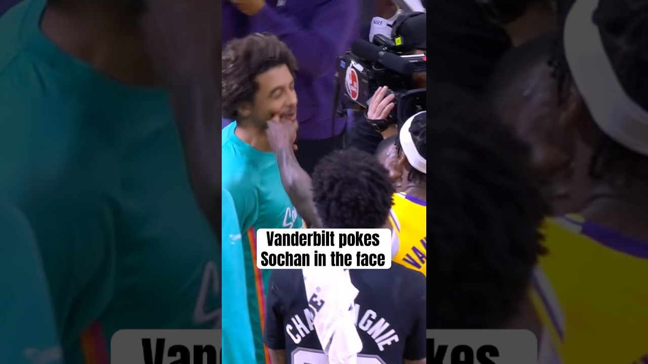 Jarred Vanderbilt pokes Jeremy Sochan in the face postgame after Lakers vs Spurs #nba #lakers #losangeleslakers.